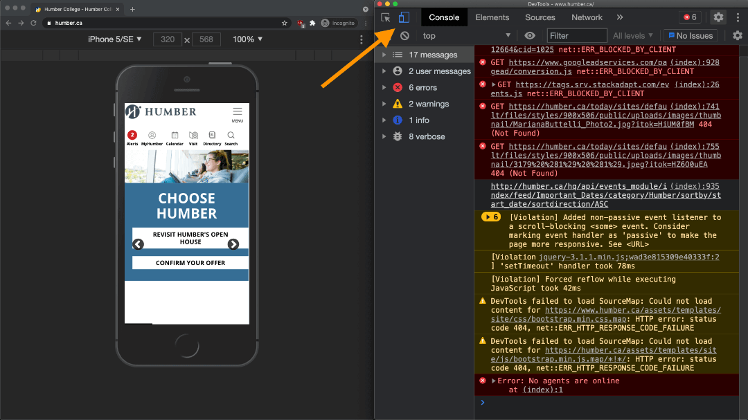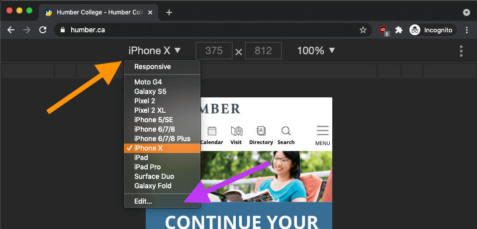 In later weeks, we'll look at how to emulate devices in a more sophisticated way with device/environment/browser automation, but this is about the extent of what's available for ad hoc testing a web application.